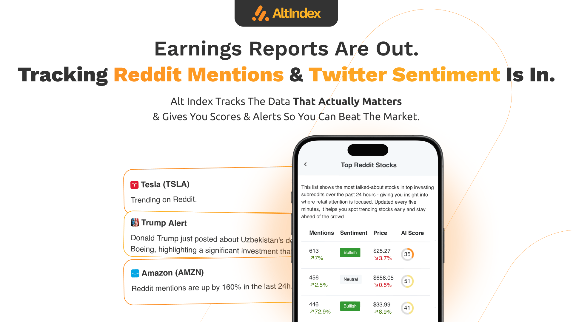 AltIndex's AI processes 100,000s of Reddit comments and factors them into its stock ratings.