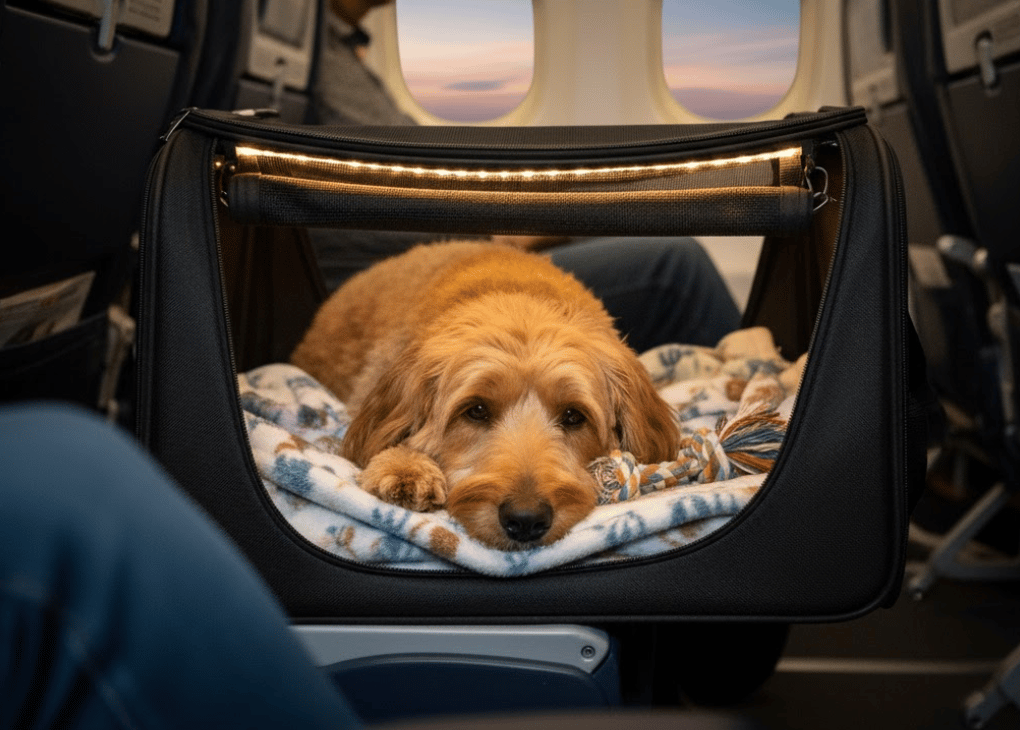 - Familiar Comfort: If your dog is in-cabin, keep the carrier under the seat and use a small blanket or cover to create a cozy, den-like environment.