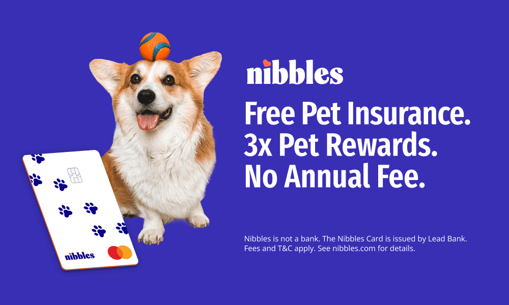 Nibbles is the first credit card that comes with free pet insurance and 3x rewards at pet stores, pet services, and the vet. Plus, use the card anywhere else Mastercard is accepted for 1x rewards. Protect your pet and your wallet in one move. All those rewards mean more treats, too!